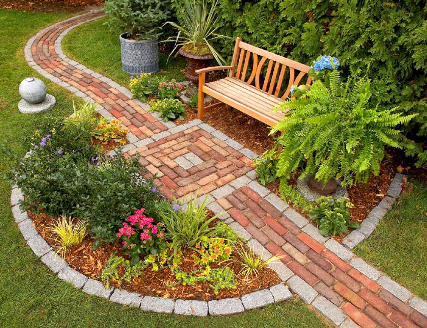 From the remaining brick after the construction of the gazebo, you can lay out beautiful garden paths