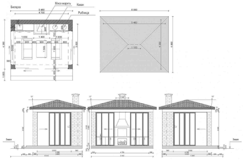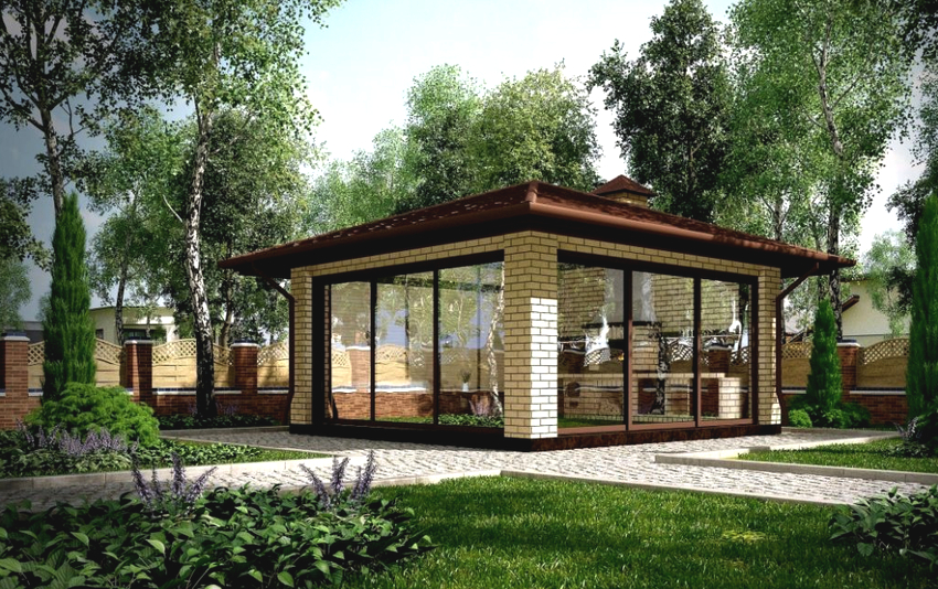 In addition, if you ensure reliable heat preservation, in the cold season, a closed gazebo can be used as a small greenhouse, for which you only need to correctly place the boxes for growing greenery. When creating a project for a gazebo with a brick barbecue, it is necessary to provide for constant ventilation, that is, there should be a possibility of through ventilation.