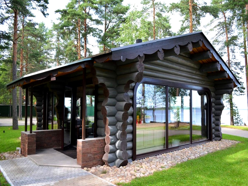 The appearance of wooden structures does not need a significant decorative addition. The proposed photos show one-storey house-boxes from a bar and a log house. Small windows and a blind front door will make the rooms cozy and inviting to privacy. Large window openings and glass doors will contribute to the contemplation of nature, the feeling of inseparable unity with it.