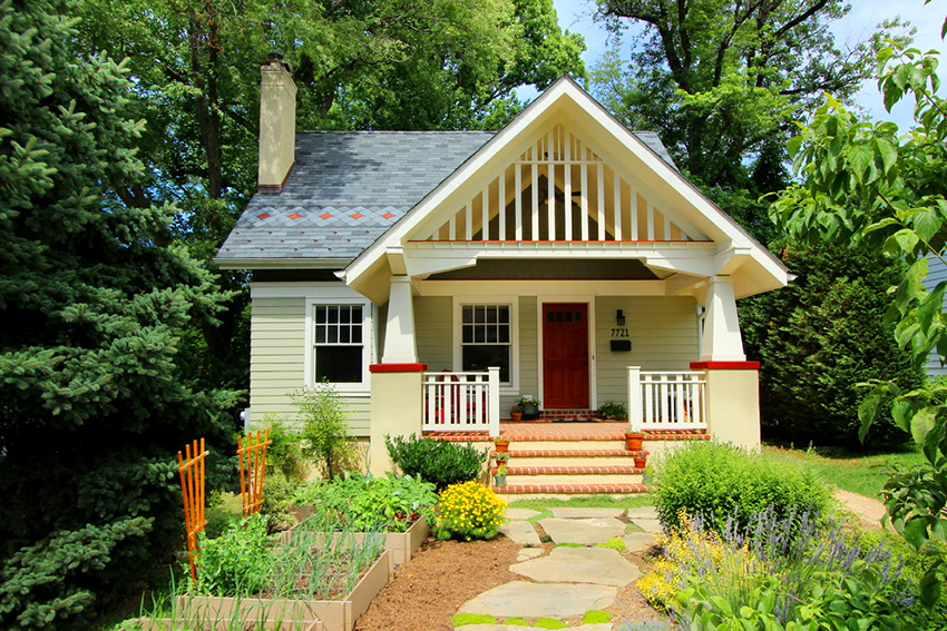 If house building is painted in a bright color, it will defiantly dominate, which means that it will be extremely difficult to create a beautiful plot. Natural shades of greenery, flower buds will be muted, natural beauty will be less noticeable. It is better if the basis is made up of white, pastel colors, cold light shades. You should not use more than two colors for painting a house, so as not to cause a feeling of unnecessary variegation.