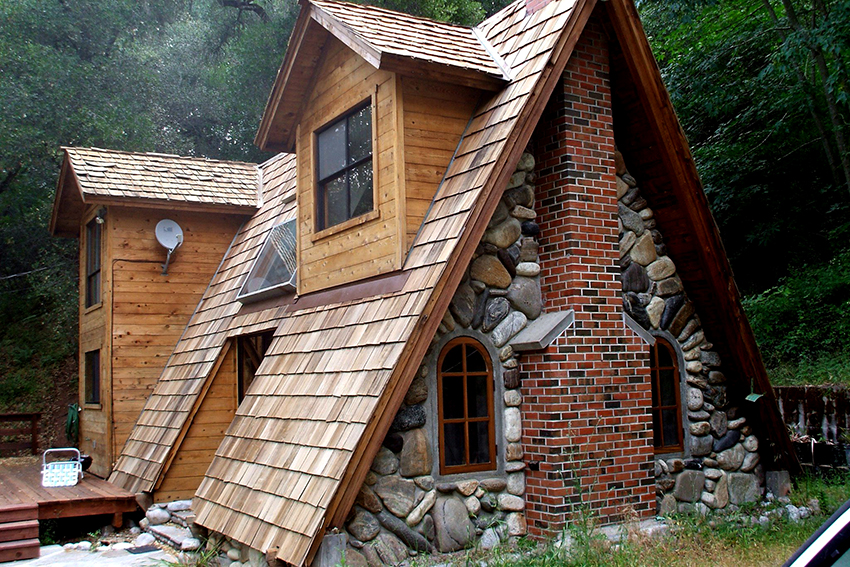 An excellent option for a wooden dacha can be houses of an original shape, for example, in the form of a barrel, an irregular parallelepiped, an oval, a hut without windows, etc.