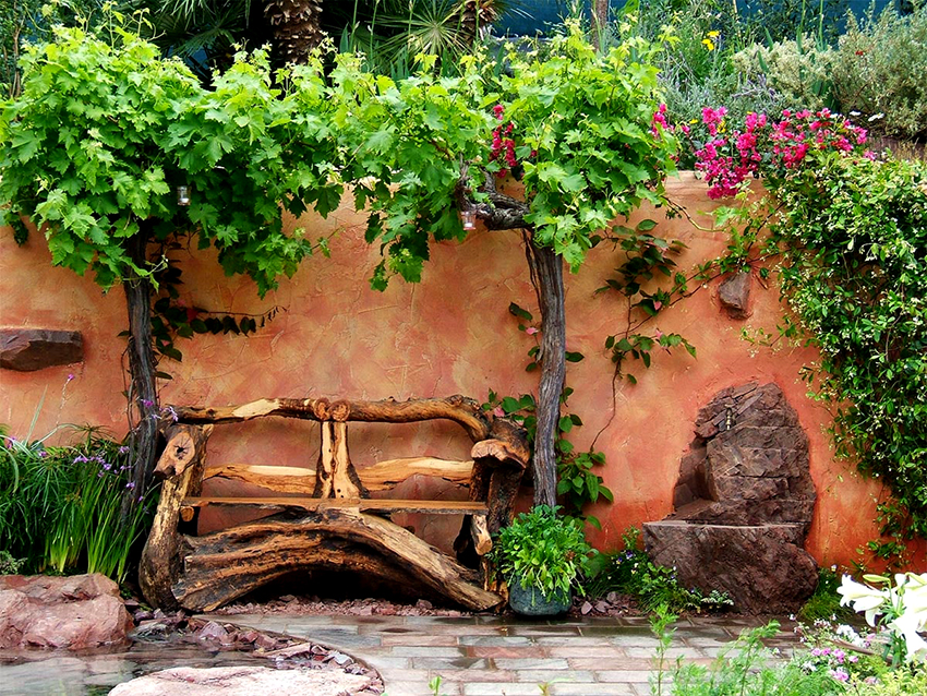 If it is possible to order the delivery of processed workpieces, the task is simplified. However, making decorative elements from available materials is a more fun process. For example, from the trunks and branches sanded with your own hands at your summer cottage you can build:
