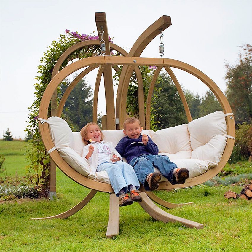 The frame part can be completely suspended or floor-standing. Even improvised materials can be used to make products with your own hands, for example, a seat from a chair or a car tire. You can also make a beautiful version of the swing, which will become a wonderful decorative element in the garden or yard. You just need to show your imagination and choose an interesting external performance.