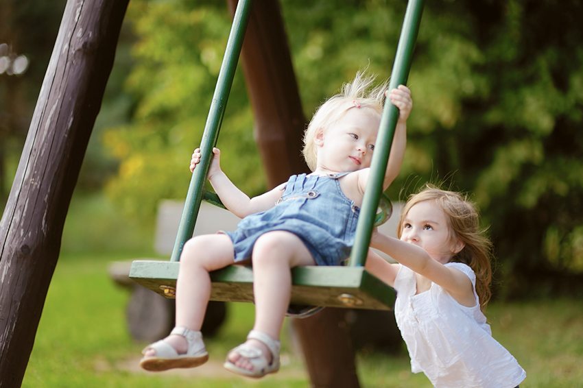 - for two - equipped with a common seat (children can swing with the same amplitude);