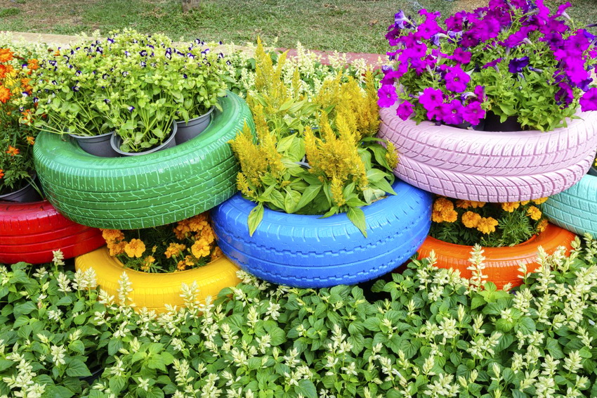 Convenient materials for making country crafts are tires, old boxes, wooden and metal barrels.