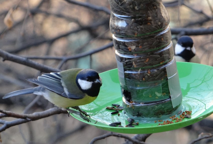 Features of bird feeders made of plastic bottles and trays