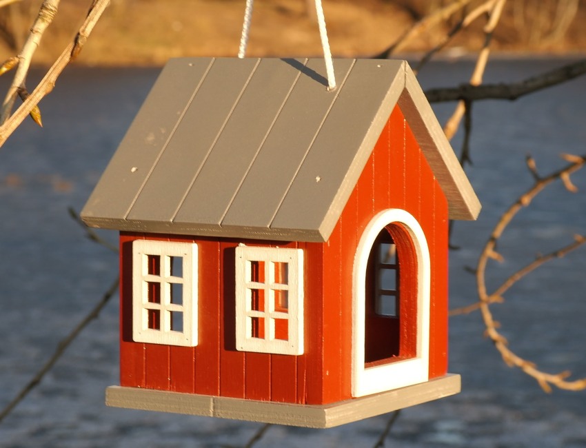 Feeders in the form of small houses protect food well from snow. By equipping the structure with a roof, you can protect the interior from wind and sparrows. But a beautiful bird feeder in the form of a house does not provide protection against spilling feed. Therefore, only those birds that are accustomed to feeding will be present on the site. For forest birds, this option is very inconvenient, because they are drawn to human housing only in crisis cases and may simply not notice the grains that have spilled onto the ground.