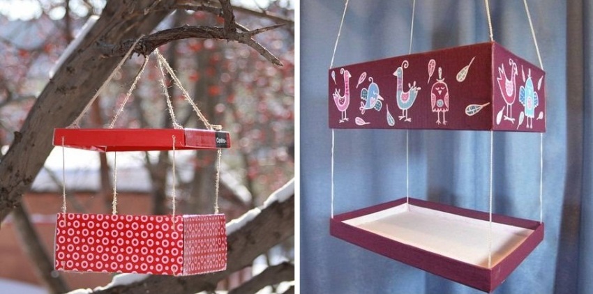 A homemade bird feeder can be made from the simplest materials at hand. Almost every home contains boxes of food, shoes, or electrical appliances. For work, it is advisable to select thick cardboard. The ideal option would be a bird feeder from a box with a laminated cover, which will increase the life of the structure.