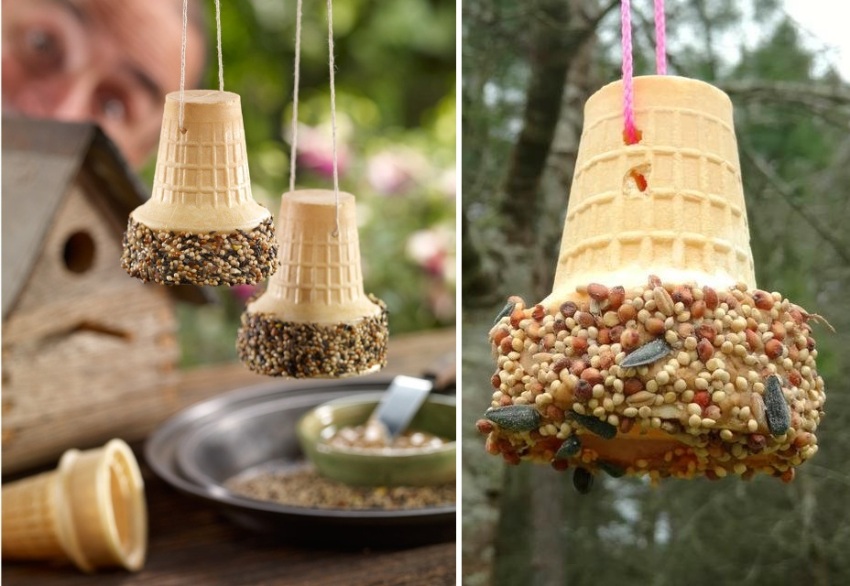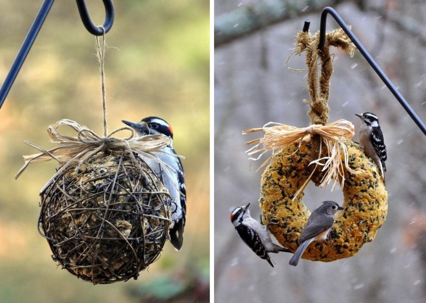 Original do-it-yourself bird feeders: photos of suspended structures
