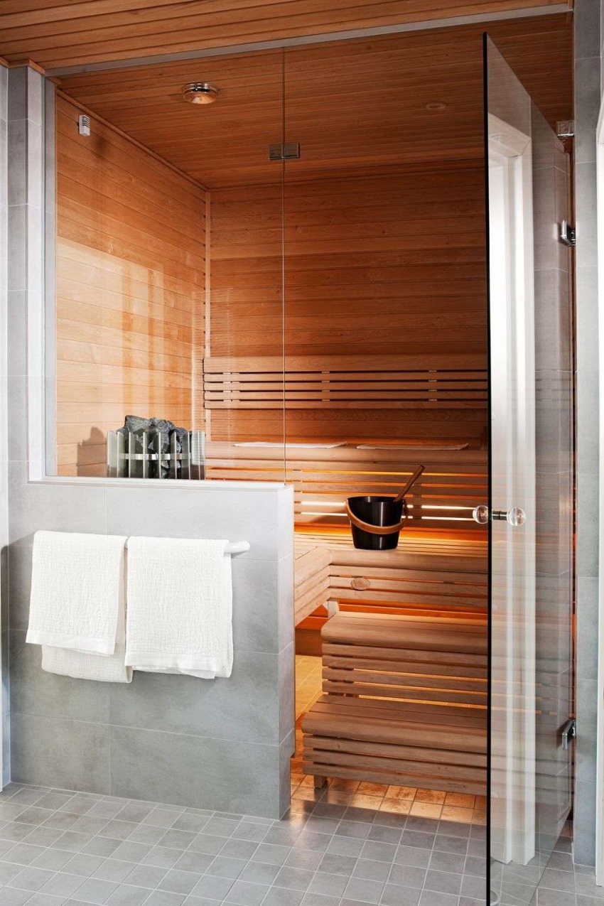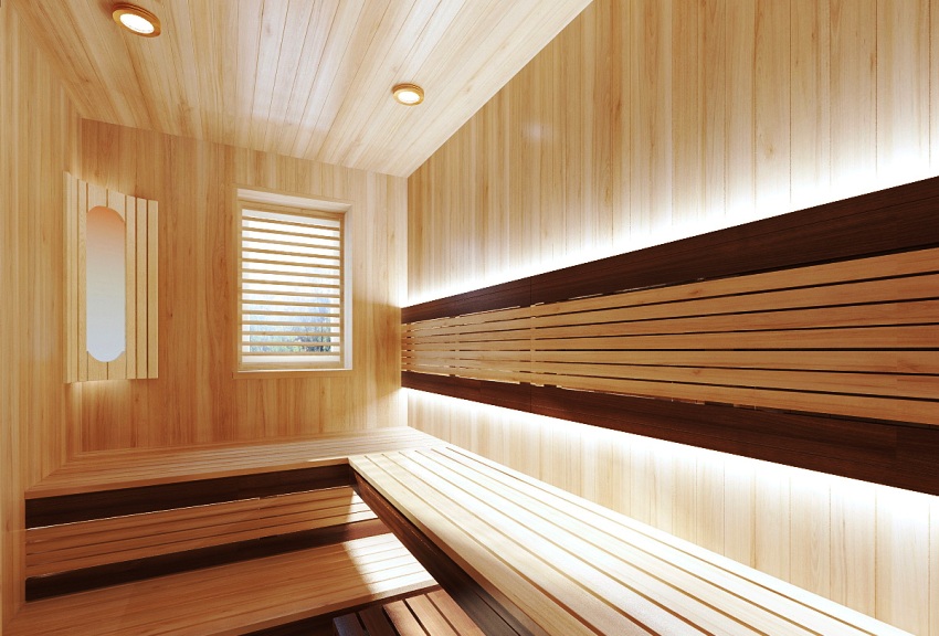 For the finishing of the steam room, high-quality wood should be used that can withstand high temperatures and high humidity.