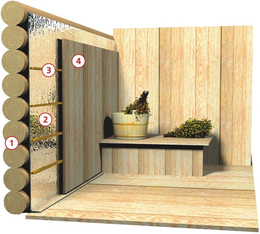 The interior decoration of the bath also implies a solution to the issue of room insulation. Sometimes experts recommend using mineral insulation. It fits under the crate, but in this matter everything will depend on the type of load-bearing walls of the building. In the event that the bath is made of stone or concrete blocks, it is better to do without insulation, otherwise after that you will have to solve the problem with poor-quality ventilation.