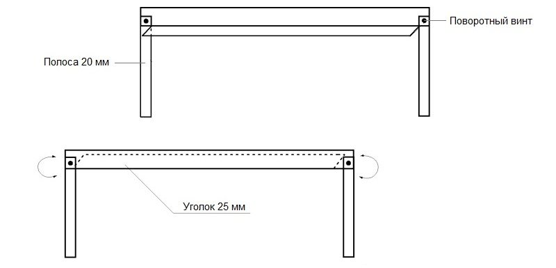 The simplest and easiest portable grill to manufacture is two small metal stands in the shape of the letter "P", which are stuck into the ground. Naturally, there is no place for coals in it; they are placed on the ground directly between the posts.