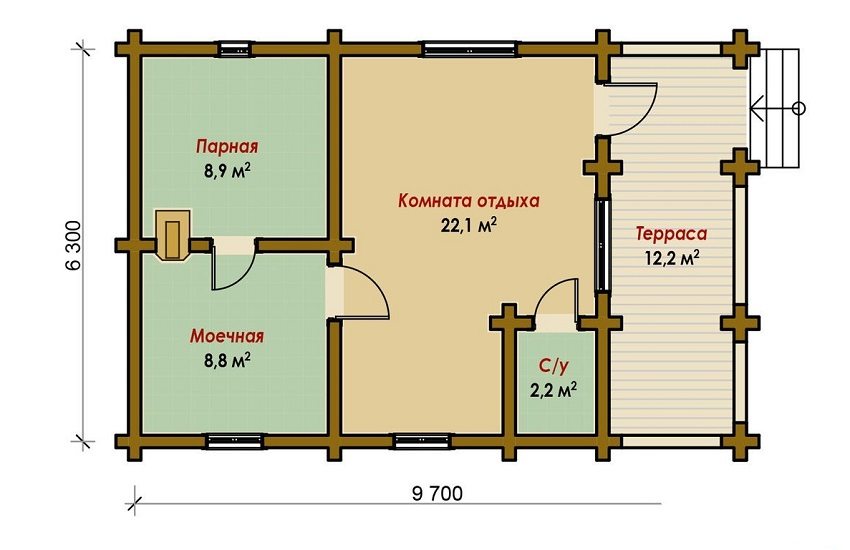 Nowadays, the bathhouse performs not only the unitary function of a room for washing people, but also an object where you can rest and relax from the bustle of the city. In this regard, build baths today with an eye to it. In addition to the main premises, such as a steam room and a washing room, there may be: a recreation room, a terrace, attic and even a pool.
