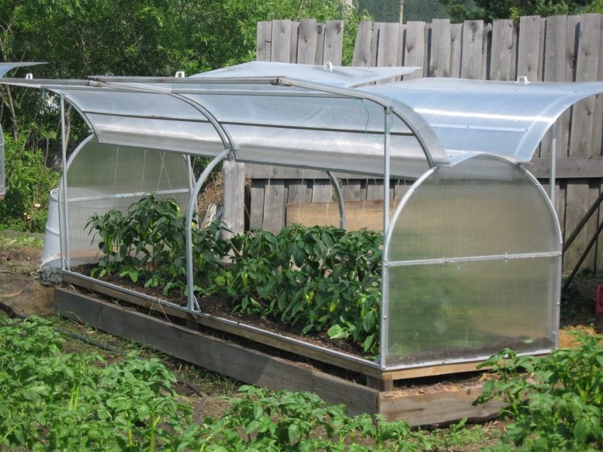 The so-called butterfly greenhouse is distinguished by a special design. It got its name because of the similarity with the insect of the same name. When the greenhouse is open, it looks like a huge butterfly that spread its wings. This form of greenhouse has the following advantages: