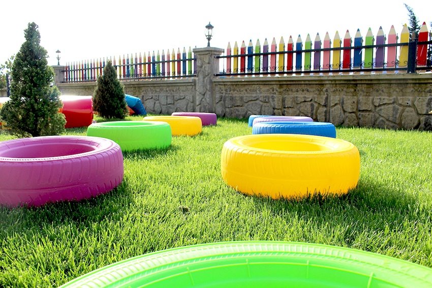 - artificial turf for playgrounds is absolutely safe, and also boasts a high level of firmness and elasticity;