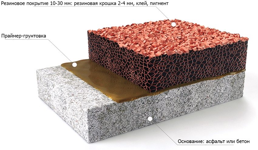 If the rubber coating is mounted on a base of asphalt or concrete, then everything is somewhat more complicated. The base must be treated with a special primer, which is made by mixing polyurethane glue and acetone in the same proportion. The resulting mixture is applied to the asphalt surface, and it can also be used to prime chips and cracks in concrete. The glue is applied with a roller or trowel, then the tiles are laid, which must be pressed firmly.