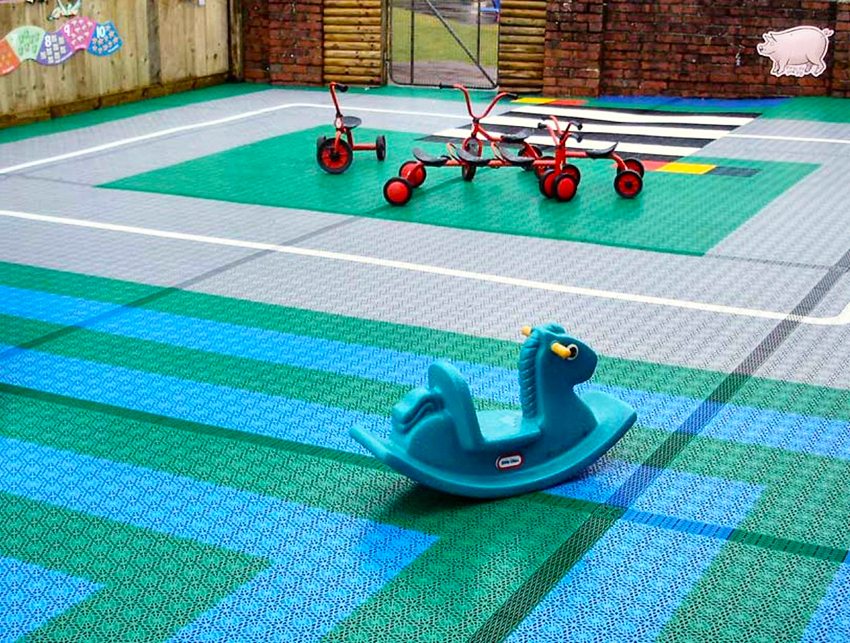 Useful advice! Laying any modular flooring requires a perfectly flat surface, therefore playground must be prepared in advance. This can be done by pouring asphalt, concrete screed, wood flooring or stone foundations.