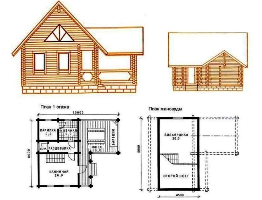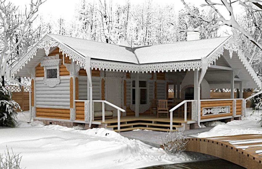 When designing baths, as an object for organizing active recreation, not everyone can afford to build a large enough room so that in addition to a steam room and a washing room, a rest room would also fit. A good budget option in this case is a sauna with a terrace and barbecue. Photos of projects of such baths are striking in their diversity.