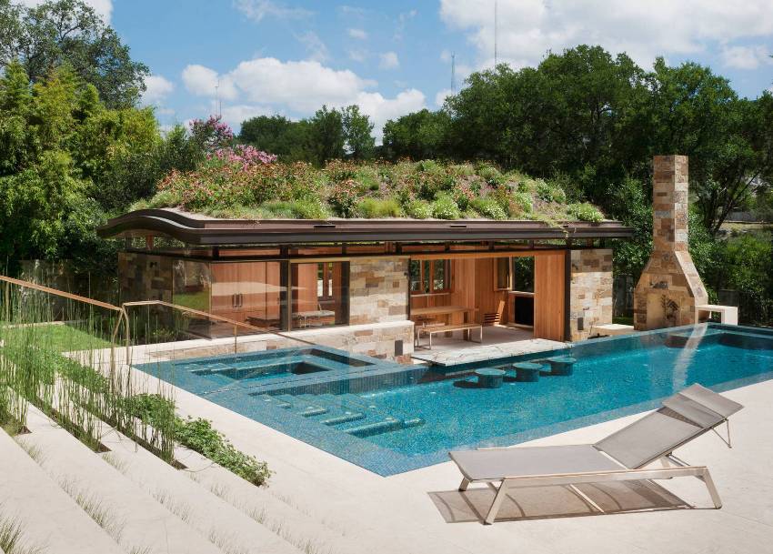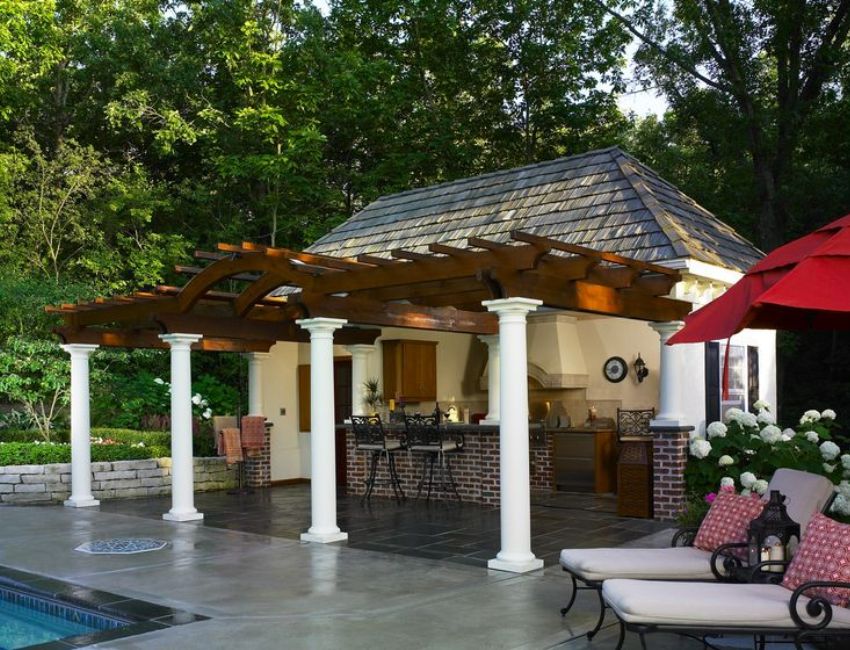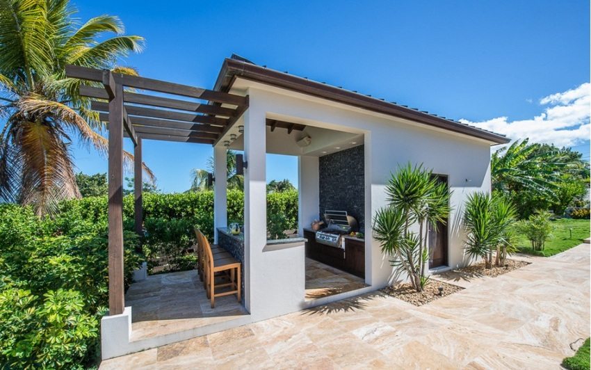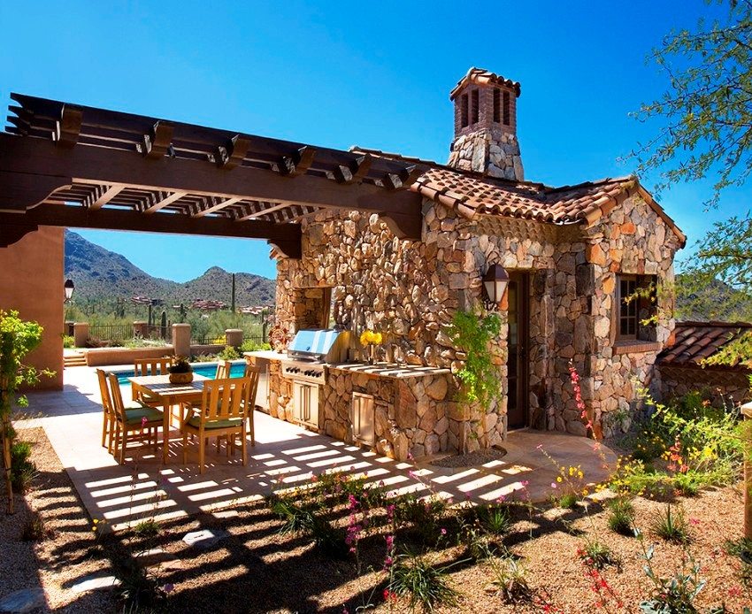 Project of a bath with a terrace and barbecue: photo options