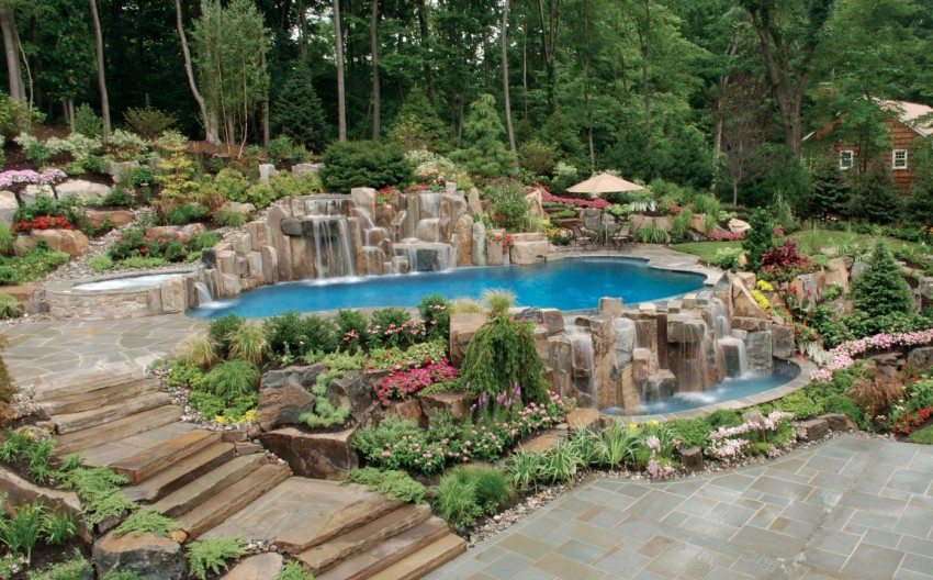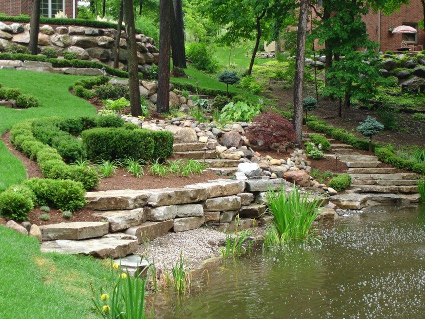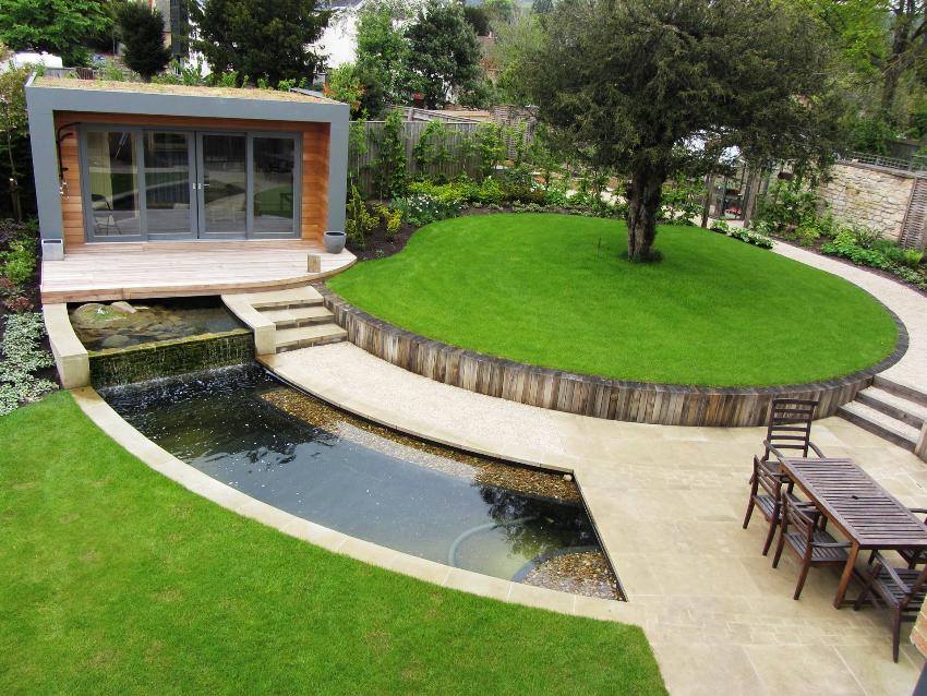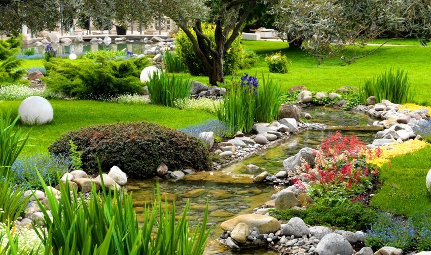 It is very important to choose a suitable place for such a decorative element. It is necessary to take into account the characteristics of the soil, to assess the relief of the territory. If the terrain is hilly, then it is better to equip a stream on it or fountain with a cascading runoff of water, and it is better to arrange a flat piece of land with a small pond. You should also consider the location of trees relative to the reservoir. Over time, the roots can destroy the integrity of the reservoir. In addition, leaves and other debris will fall into the water from the trees, due to which you will have to clean the pond more often.
