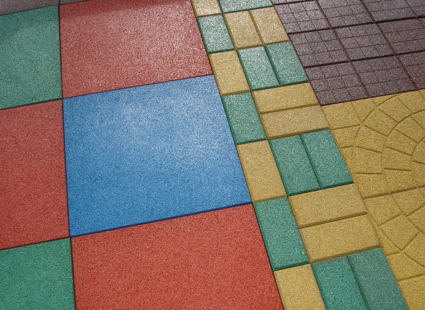 Thanks to the color pigments included in the composition, you can get completely different shades of rubber tiles