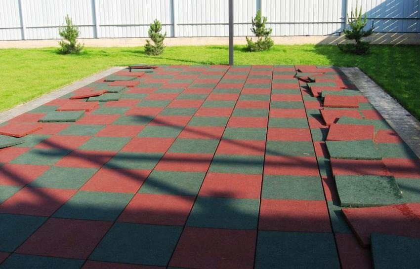 Useful advice! Rubber tiles are very suitable for covering playgrounds and sports facilities. Therefore, if on dacha there are swing, horizontal bars, bars or slides for children, then they must certainly be covered with such material. This will prevent injury to children.