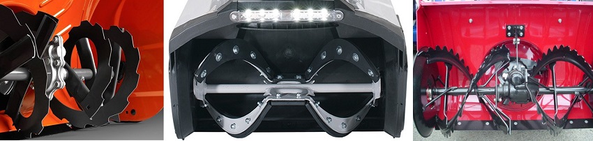 Depending on the conditions in which you plan to use the snowplow, the working surface of the auger may be different. Its device can be compared to a knife, the edge of which literally cuts off the top of the snow. So, if the snow has only recently fallen, it is more convenient to use an even edge, while a jagged surface will cope better with icy and long-standing snow. In turn, the serrated edges differ in the number and size of the serrations.