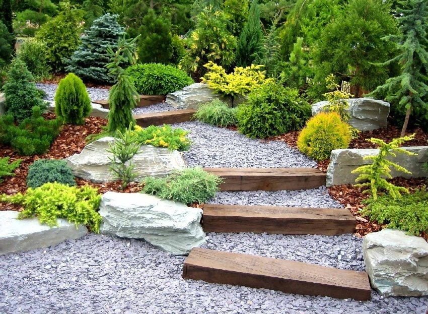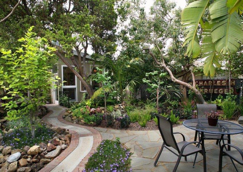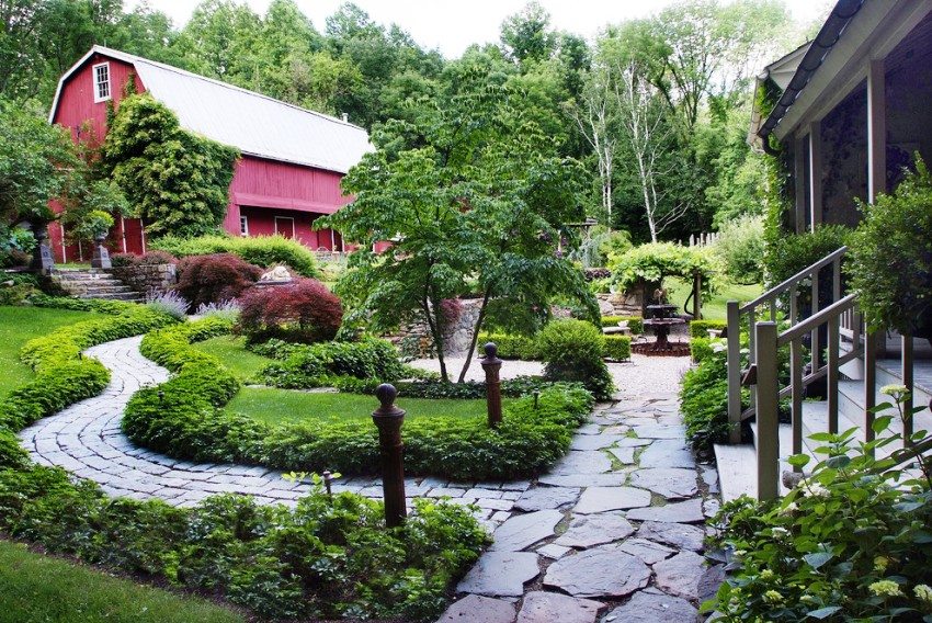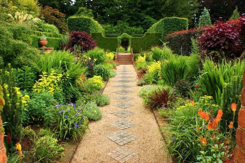 - practical - creating a comfortable and comfortable environment where it is safe to be. This factor makes it necessary to build paths where they are most needed for movement between objects and outbuildings. For the same purpose, the tracks are made between beds and trees. The choice of material depends on the actual purpose and frequency of use;