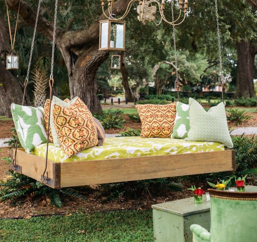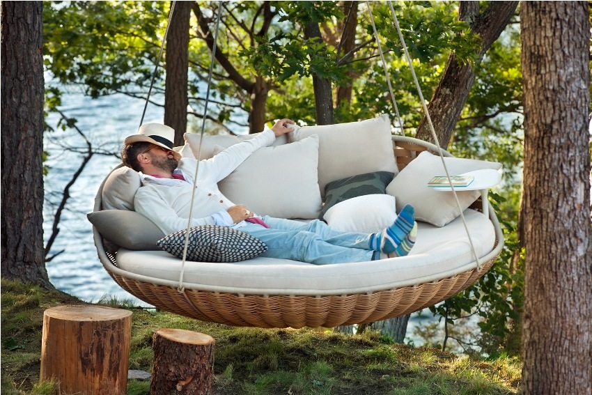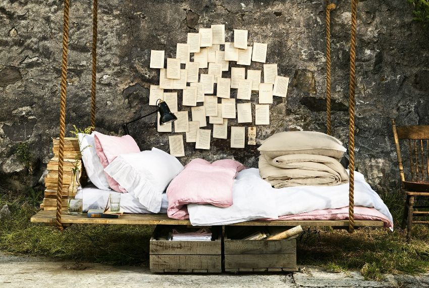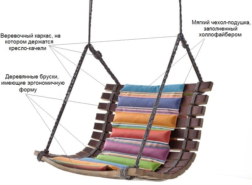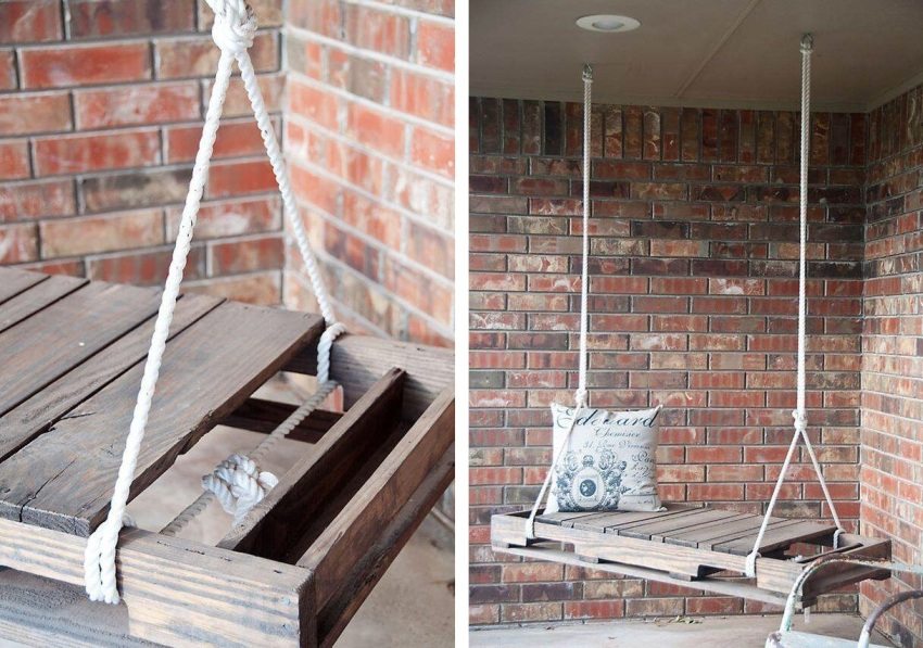 For greater comfort, can be put on bench pillows or a small mattress to reduce the firmness of the fit. It should be sized according to the size of the seat. Anyone who is familiar with the technology of making upholstered furniture can be advised to apply these skills when creating a swing. Make soft not only the seat, but also the backrest, as well as the armrests, if they are present in your design. Do not forget that soft upholstery is possible only if the product is located under a roof or a canopy.