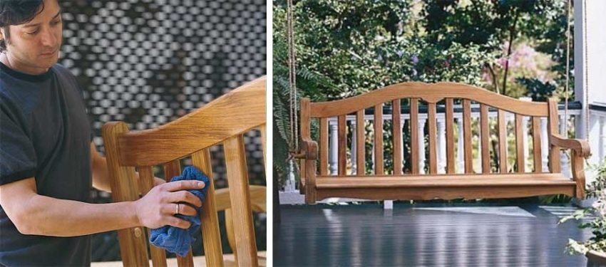 Helpful advice! To prevent premature damage to the wood, it is enough to install the structure under a canopy or pull an awning over it. Thanks to this, you will protect the swing from the harmful effects of rain and sun. Special protective agents and antiseptic compounds solve the problem of parasites, fungi, decay processes and moisture.