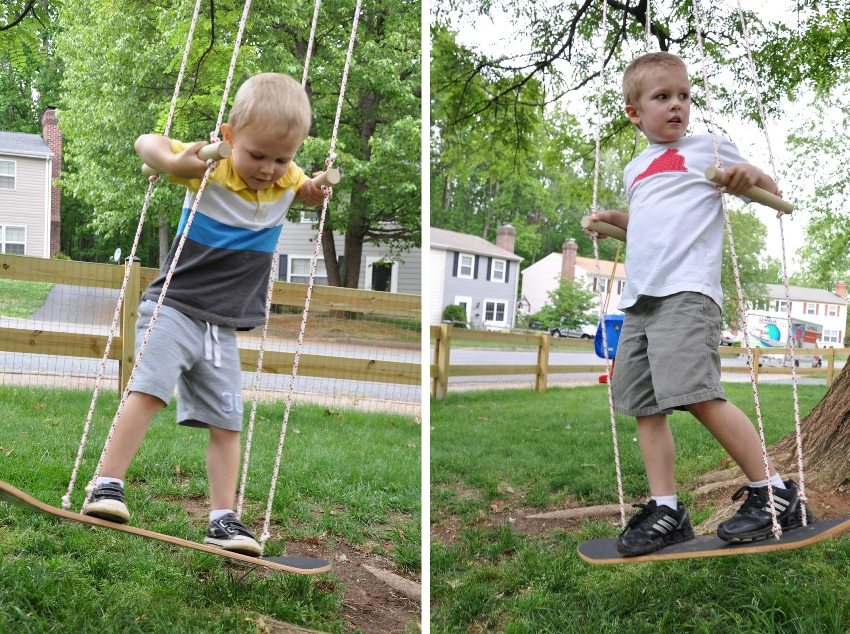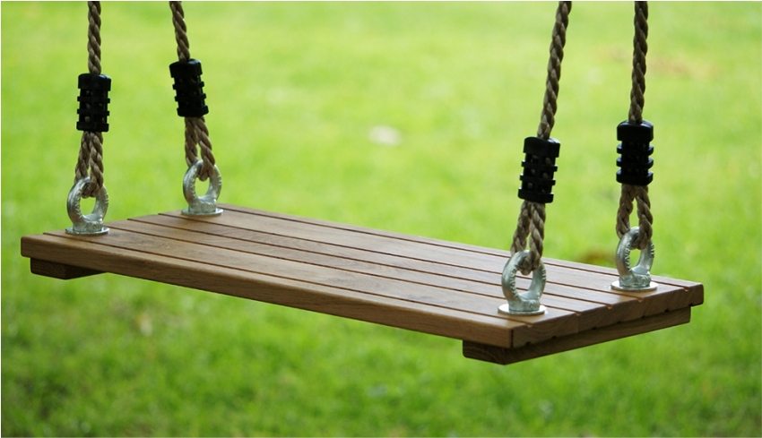 The second technology involves the creation of a swing based on a frame made of wood. This element is tied to a crossbar or a tree branch with ropes, and the free space is filled with small but strong planks.