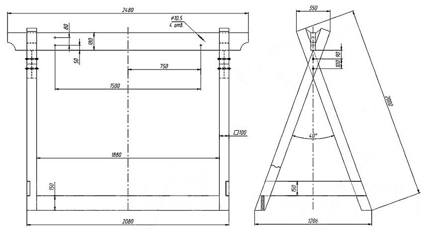 DIY garden swing drawings: assembling the support