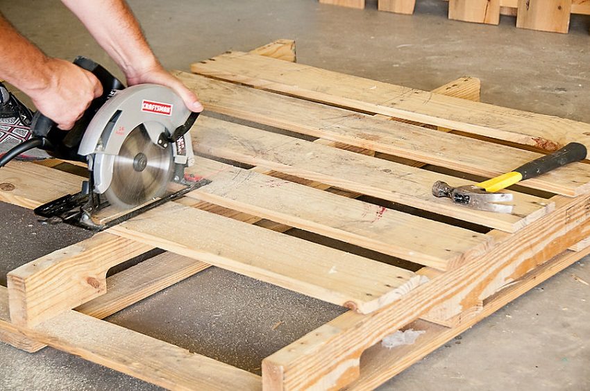 To make the support, you will need to saw the crossbeam to the specified size using a circular saw. Marks are made at a distance of 15 cm from each end and a straight line is drawn. It should run along all edges on the beam. This line will be considered as the outside face for the A-shaped support.