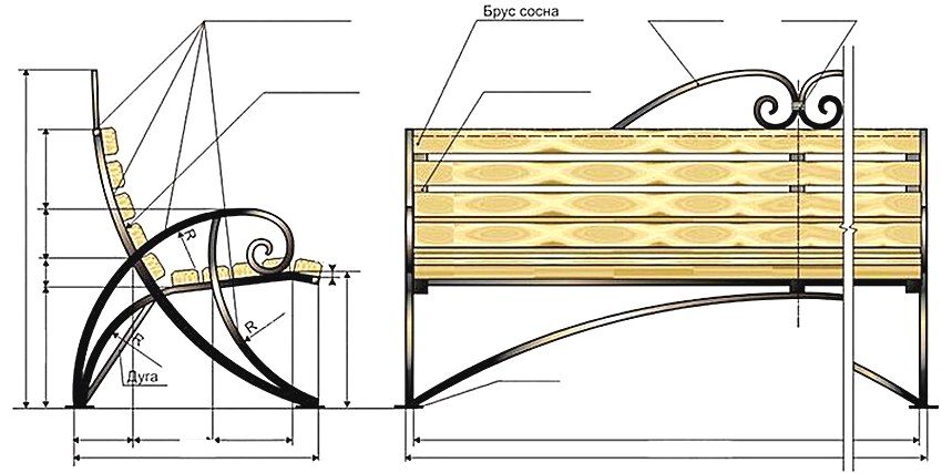 - ergonomics - the design you develop should be comfortable. In most cases, this type of product is created specifically for relaxation, therefore it is recommended to use drawings of structures with a back to create a bench with your own hands from wood.