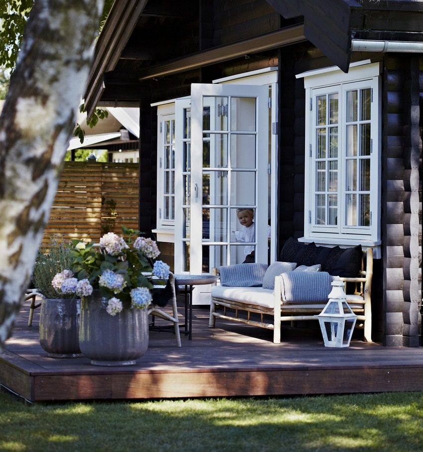 This idea can be used to organize an entire patio in the yard or on a flat roof of a cottage. Create your furniture composition, consisting of a table and two large benches or several single seats.