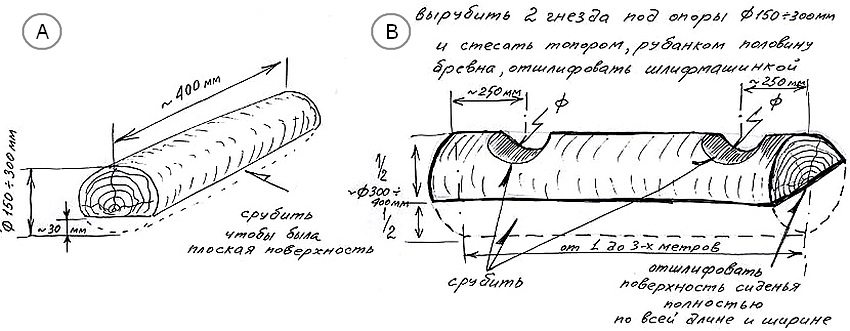 Useful advice! The seat board must be well sanded. Support stumps can also be freed from the bark and sanded or, on the contrary, left intact if you want to achieve a distinctive appearance.