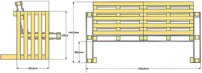 The design is so simple in execution that drawings are not needed to make a wooden bench from pallets with your own hands. For this, it is enough to use your imagination.