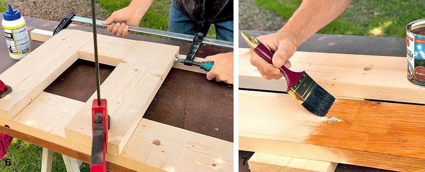 To ensure a good adhesion of the adhesive, clamp the pieces (17.5 cm) until the compound is completely dry. Further, the entire back should be treated with an antiseptic composition. Varnish will help to increase the level of durability of wooden parts and their decorative properties. Cover the wood with compound.