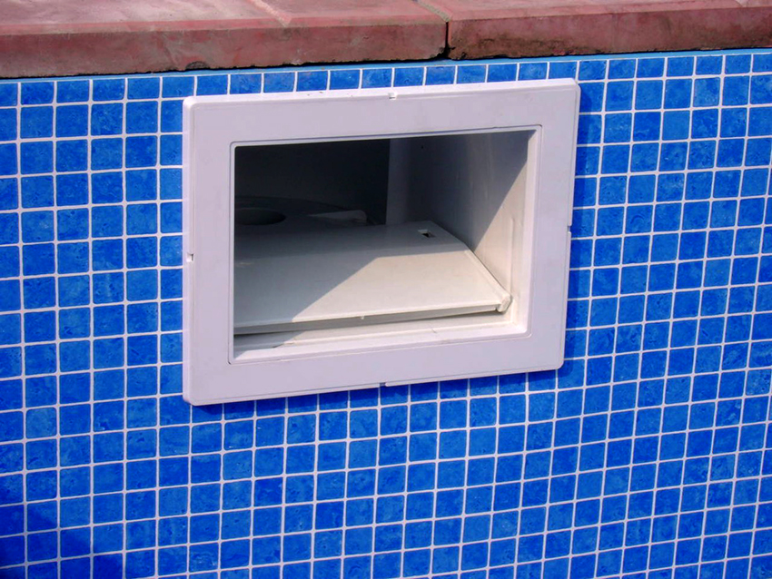 During installation, the flange must be flush with the plane of the wall of the artificial reservoir. At the end of the fixation, the film is applied. It must be cut along the inner contours of the front frame of the filtration device. Of course, it is easier to install a mounted pool skimmer, but built-in models are more reliable.