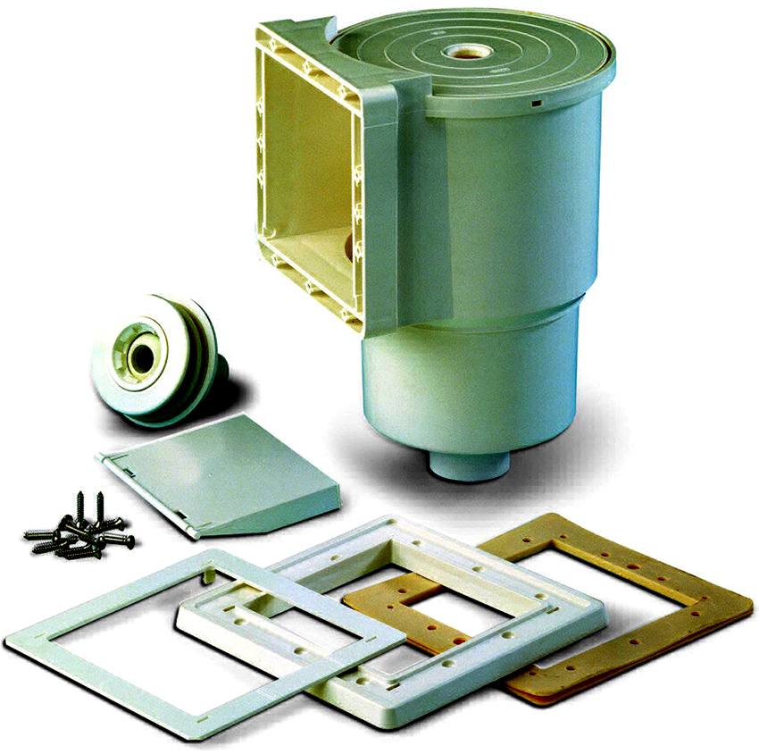 How to install a skimmer in a concrete pool? The installation of the filtration device in the formwork is carried out by means of plates that are located on the flange. It is important to remember that the flange must be at the point corresponding to the center of the formwork. Its height is selected so that the water surface does not rise above or below the middle of the hole.