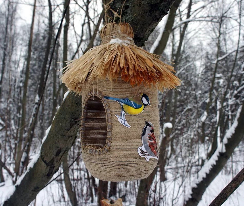 How to make a birdhouse (container size from 3 liters):