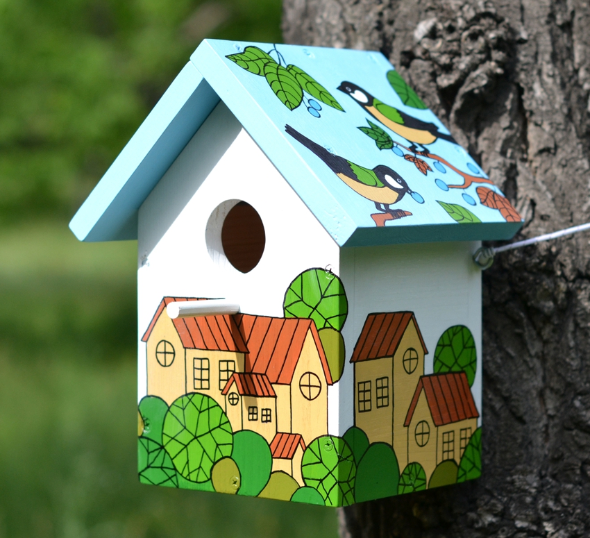 Decorated birdhouses can be created with children. This excellent activity promotes the development of fine motor skills of the fingers, accuracy and dexterity of the hands. In addition, the child will be able to realize his own imagination and creative ideas.