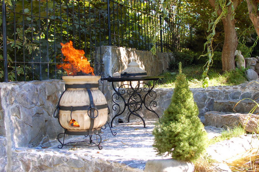 The structure can be made of clay or brick on your own, having mastered certain requirements, or you can buy a stove. Tandoor in specialized stores is represented by a wide range of varieties. Thanks to the original finishing of the finished product, this traditional Uzbek stove will become a real decoration of the yard.