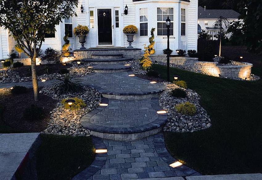 Modern energy-saving technologies make it possible to lay tiles in the yard that glows at night, giving a futuristic look to the entire plot. This is achieved by introducing LED bulbs into the tiles themselves during their manufacture. Such sources give a lot of light, but consume very little electricity, which allows you to keep the illumination all night long without significant losses for the family budget.