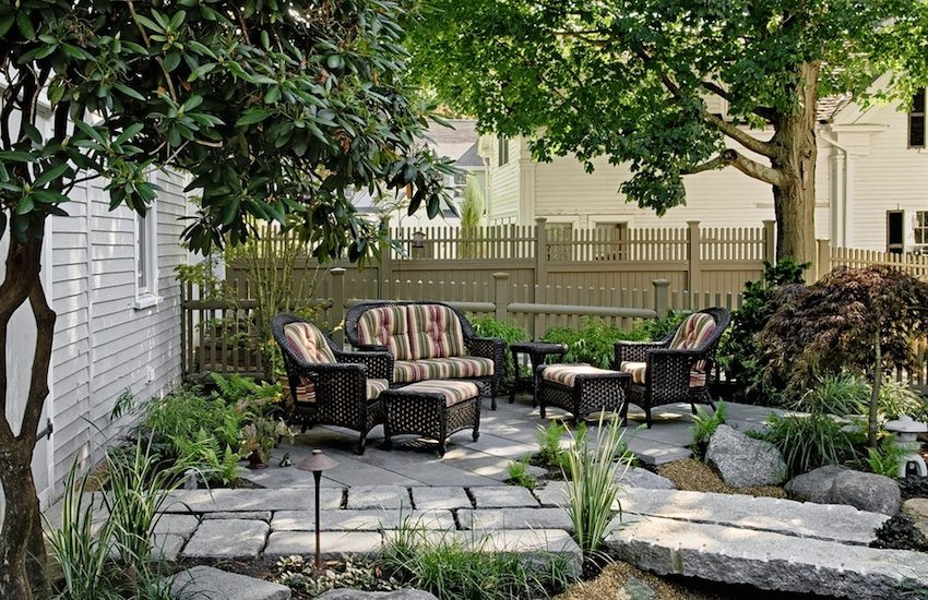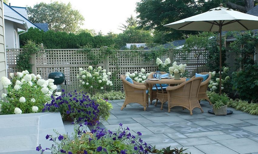 The variety of types and colors of paving slabs makes this popular material simply irreplaceable when decorating a courtyard in a private house.The choice of this or that stylistic concept depends on the creative possibilities of the owner, his tastes and preferences.