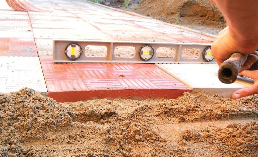 Helpful advice! Use a special tool (a wooden mallet, a rubber hammer) when laying paving slabs on the sand with your own hands so as not to damage the coating.
