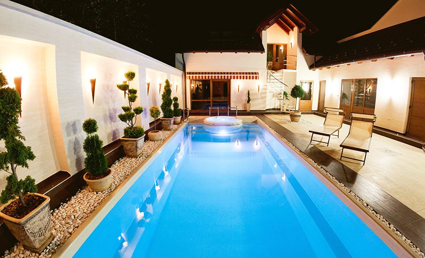 Photos of swimming pools in private houses indicate that polypropylene structures look somewhat rustic in comparison with their concrete or composite counterparts. This trend is due to the texture and color limitations of this material.