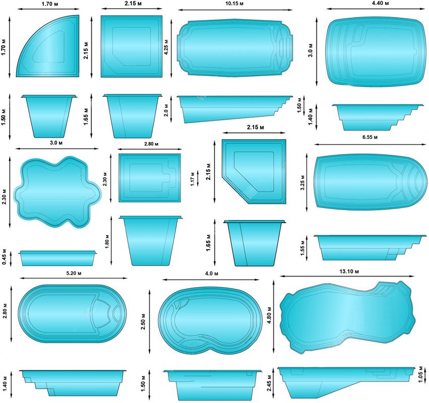 The presence of various bowl sizes allows you to install a pool even on the territory of a small summer cottage