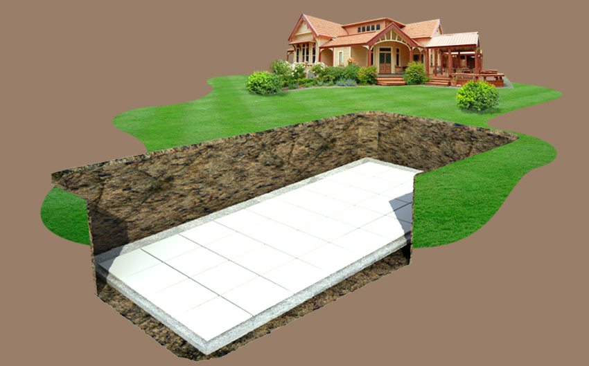 Work begins with the preparation of a pit for a future structure. The dimensions of the pit depend on the size of the container itself. The pit should be about 1 m wider than the bowl in width on each side and 0.5 m deeper. This size of the pit allows you to easily install the pool bowl there and bring all the necessary communications.
