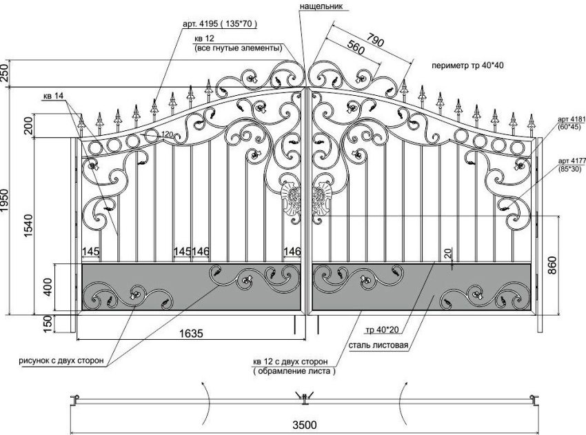 Forged sashes also look good, but it is best to entrust their creation to a master due to the complexity of such a process. Without special skills, it is impossible to assemble such a gate with your own hands. Drawings, photos and videos to facilitate self-assembly of other types of doors can be found below.
